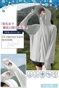 【指先まで徹底UV対策!】SPF50+、UVカット率99%の高機能素材を使用し、紫外線をしっかりガード! 手の甲のみならず、指先までしっかり日焼け対策できるUVカットパーカーです。