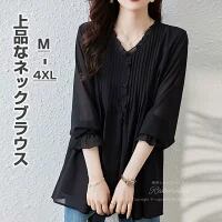 トップス レディース ブラウス トレンド Vネック カット ソー プルオーバー 20代 30代 40代 50代 60代 春 春夏 夏 人気 カジュアル 半袖 フリル 大きいサイズ ゆったり M-4XL 母の日 ミセス 実用的 誕生日 ギフト プレゼント ブラック