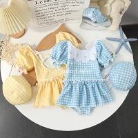 水着 女の子 ハット付き かわいい 子供 水着 格柄 無地 リボン パフスリーブ レディスタイル ブルー イエロー 癒し ベーシック 魅力的 写真映え カラフル 休日 ナチュラル 旅行 お出かけファッション おしゃれ ポップ モダン かわいい フリル 幼稚園 子供 女児 小学生