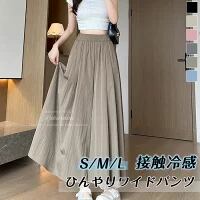 アイスシルク ワイドパンツ レディース 春 夏 接触冷感 ハイウエスト スカーチョ ドレープパンツ ワイドレッグ カジュアル きれいめ オシャレ スカートパンツ 韓国ファッション ゆったり 柔らか 薄身 体型カバー S M L