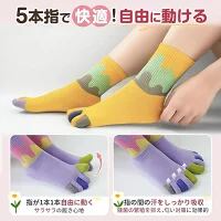 【5本指が自由に動ける】 指を1本ずつ独立させた設計で踏ん張りが効き、指先の動きが血行を促進し、冷え性改善やむくみ解消にも効果的。窮屈感なく「足元の解放感」を実感できます。履き口:しめつけの少ないゆったりロゴム、履き口着用感:標準、厚み:標準。