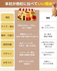 【市販品より大きくて厚い 】サイズは約80×60cm・約700gと、市販品よりも一回り大きく厚みも十分。複数の犬や猫が一緒に使える広々設計で、大型犬にも対応可能です。「ワンタッチバックル」付きで、使わない時はくるっと巻いて省スペース収納ができます。