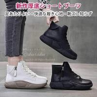 ■新作厚底ショートブーツ:履き心地が良く、ソフトな風合い、プレミアム牛革、快適な履き心地、通気性が良く。ライニング、通気性生地で、足が蒸れない、快適な厚底、痩せ見えで、きれいな脚を演出。