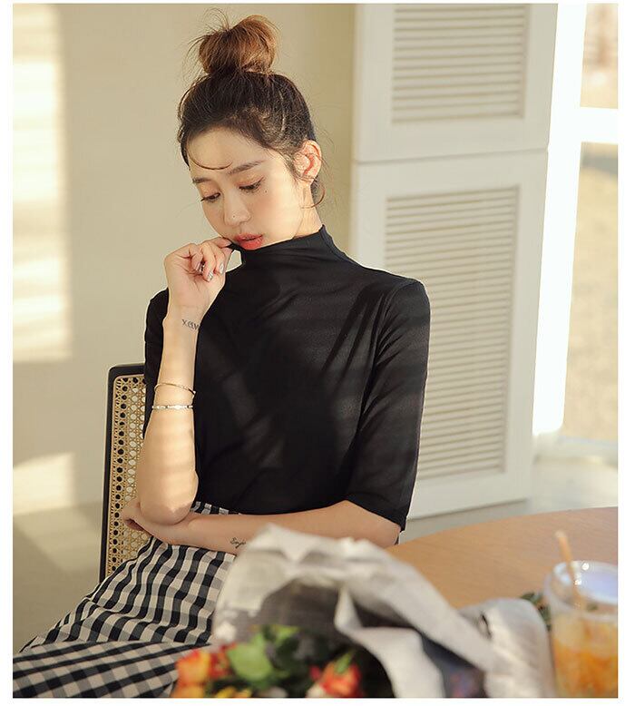 2022新作 夏服 半袖 Tシャツ トップス ハイネック レディース 春 Tシャツ 無地 カットソー 半袖tシャツ 五分袖 タートルネック 薄手 フィット スリム 韓国 ファッション トレーナー 20代 30代 40代 OL
