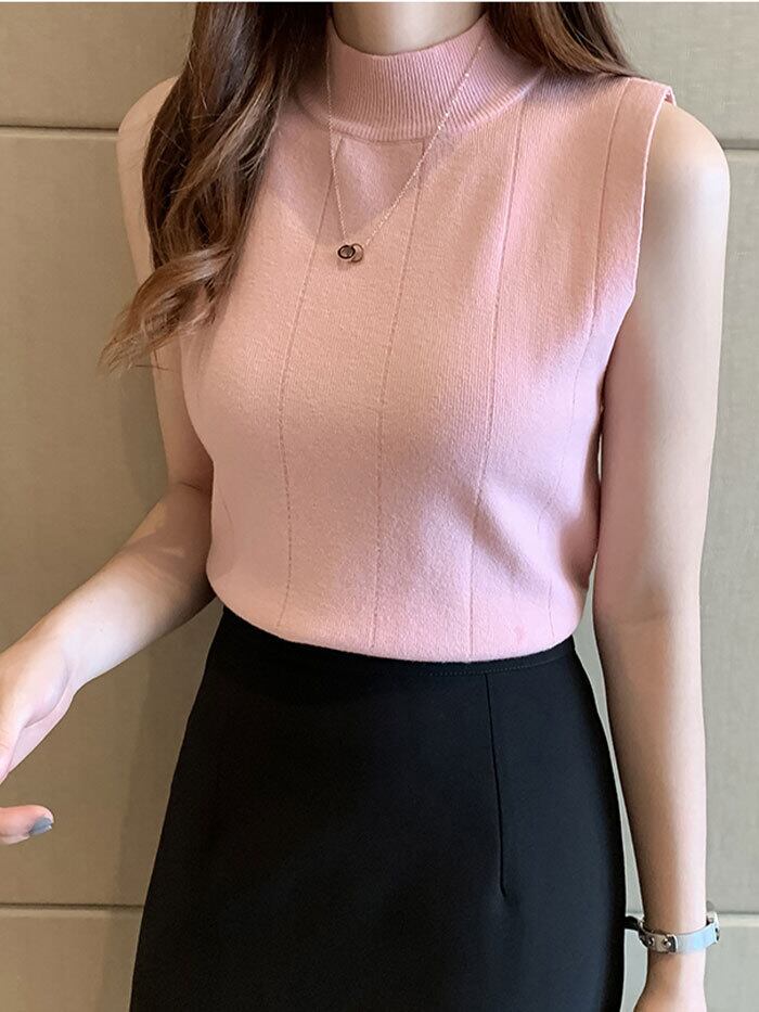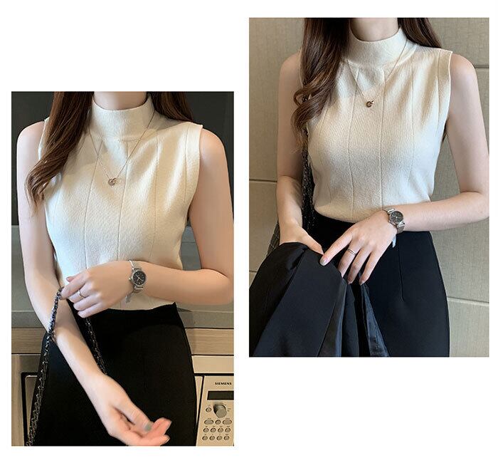 トップス レディース カットソー ハイネック ノースリーブ レディース トップス 袖なし 編み物 春 夏 秋 ゴルフ ハイネック 無地 カットソー タートルネック 薄手 フィット スリム トレーナー 20代 30代 40代 OL