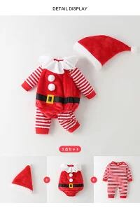クリスマス服 サンタスーツ 3点セット サンタクロース 仮装 衣装 子供用 ベビー服 長袖 キッズ サンタ コスプレ サンタコス コスチューム クリスマス サンタクロース ウィッグ コスプ クリスマス 誕生日 プレゼント ギフト 柔らかい 帽子付き 70-95cm