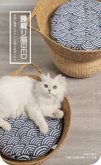 夏用 ペット用品 ちぐら型 ペットベッド 2way ひんやり 冷感 ペット用ソファ ベージュ ラタンかご ネスト 犬 猫 藤編み 手編み ラタンかご 藤かご ソファ 春夏用 ふわふわ マット 爪とぎ 円形 丸型 クッション付き 柔らかい ぐっすり ラタンベッド
