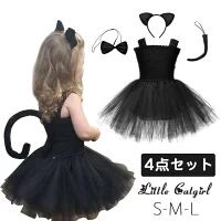 ハロウィン 衣装 子供 女の子 COS 猫 ネコ ジャンパースカート 黒猫コスチューム なりきり チュチュワンピース 変装 仮装 猫耳 イベント 舞台劇 舞台衣装 学園祭 ワンピース+猫耳+蝶ネクタイ+猫しっぽ 万聖節 セット