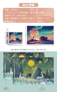 含まれています:1000個のピース、梱包箱×1、特殊ゴム粉×1、防湿ビーズ×1、仕切り板×1、メッシュバッグ×1、原画×1