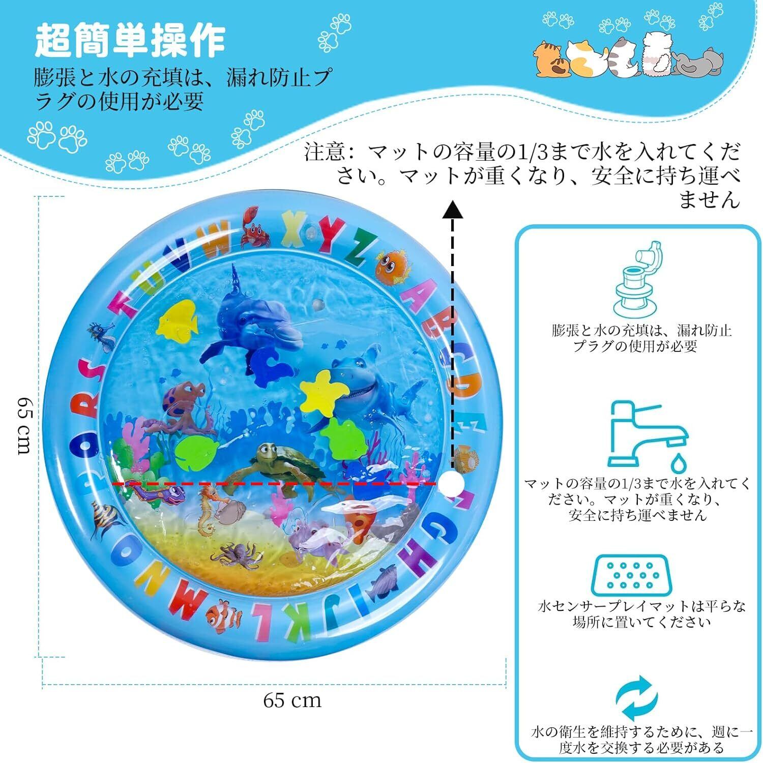 猫 マット ウォーターベッド 冷感 熱中症対策 猫用 ウォーター ベッド 夏 暑さ対策 プレイマット おもちゃ インタラクティブな水遊びマット ペット用プレイマット 猫 犬 子供用 猫用ウォーターベッド 猫ボールプレゼント