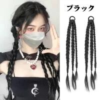 【 2点セット 】ポニーテール 三つ編み エクステ つけ毛 自然 ドレッド ウィッグ へアゴム 編み込み カラー エクステンション つけ毛 大人 子供 キッズ ガールズ 毛束 パープル グレー ブラック ブルー 派手 コーンロウ ダンス 自然 女性用 部分かつら 軽量