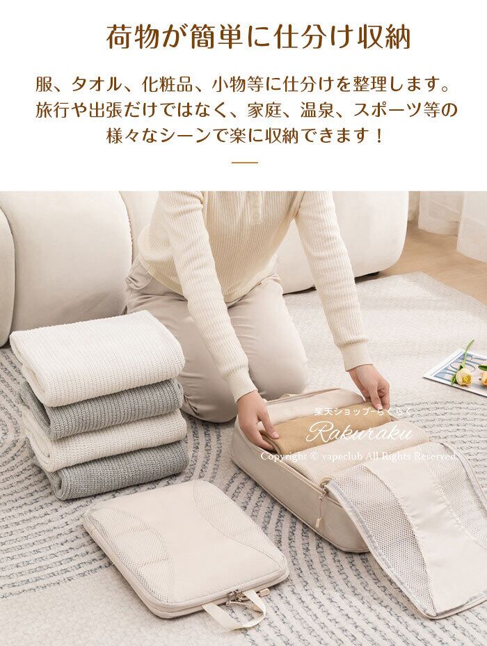 【多用途性】 荷物が簡単に仕分け収納できます。服、タオル、化粧品、小物等に仕分けを整理します。旅行や出張だけではなく、家庭、温泉、スポーツ等の様々なシーンで楽に収納できます!